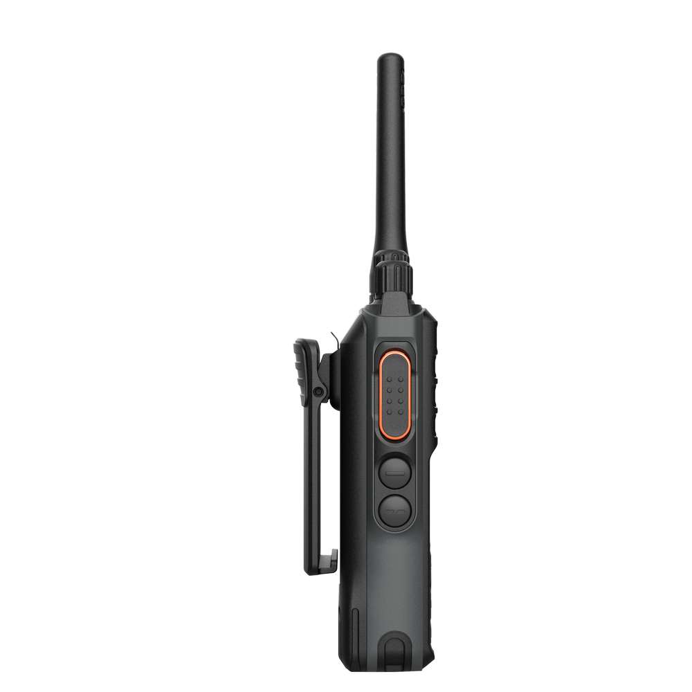 HT UHF ini memiliki dua tombol khusus untuk mengatur volume dan channel. Klip sabuk dapat dilepas atau dipasang tanpa menggunakan sekrup. Lampu indikator LED berukuran besar juga mempermudah pengguna melihat status radio saat berada di tangan, bahu, atau pinggang.